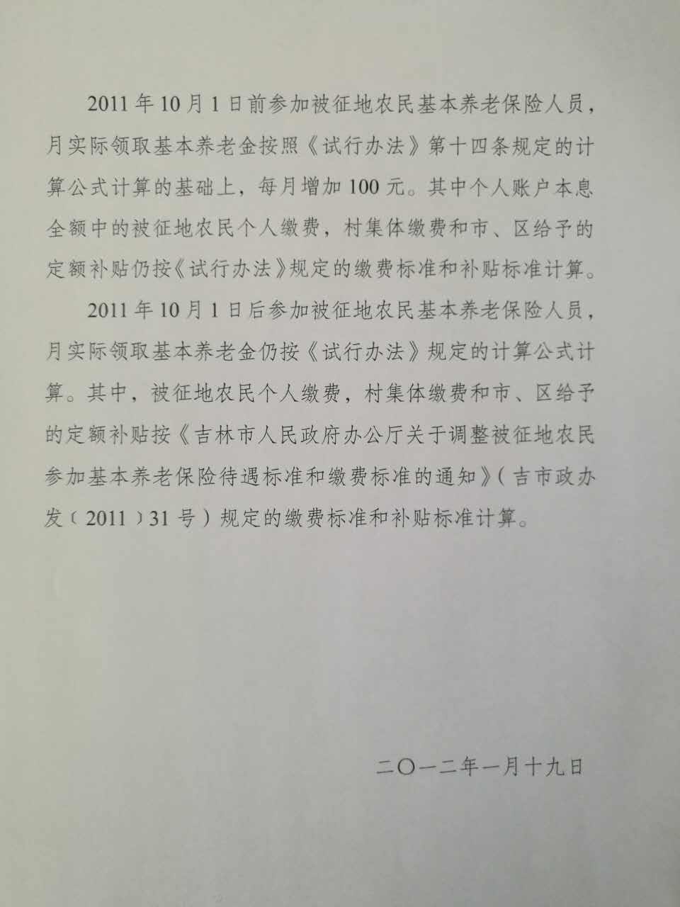 关于调整被征地农民参加基本养老保险待遇支付标准有关问题补充意见的函(吉市人社函【2012】2号)1